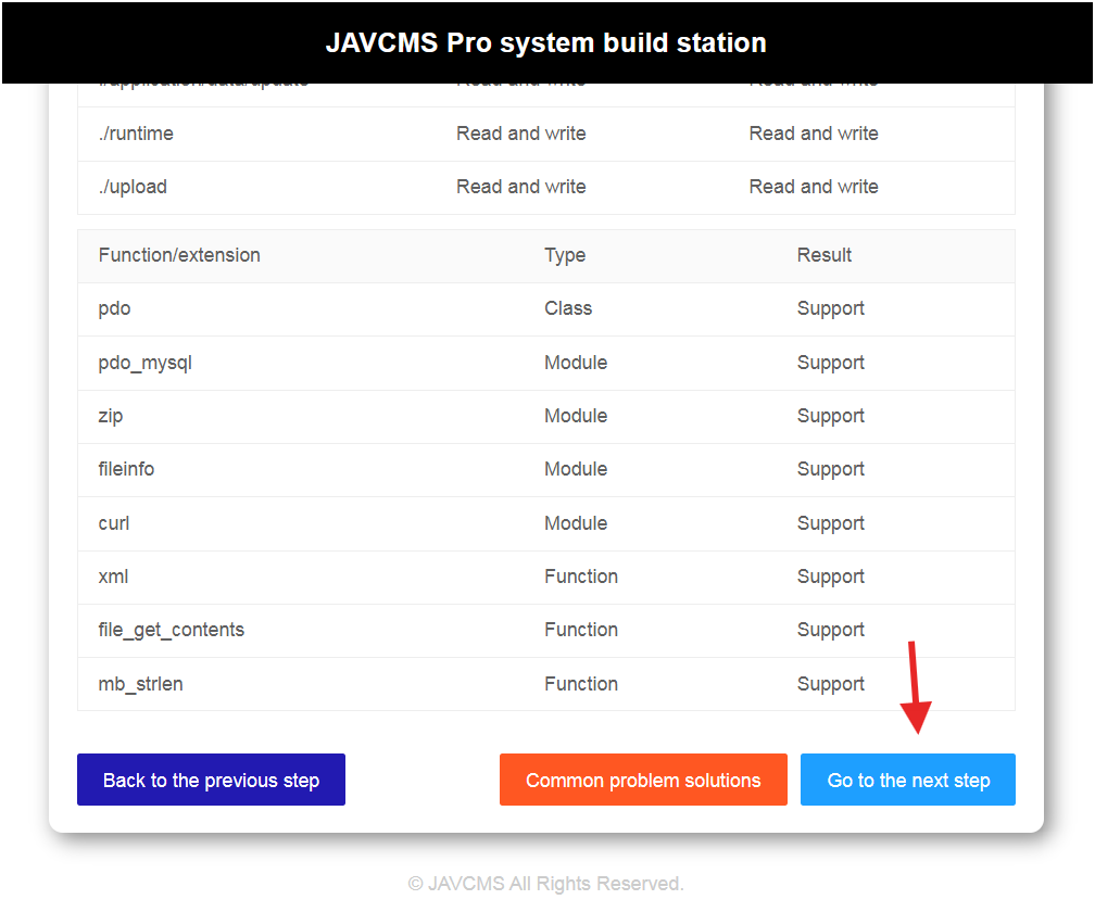 Check the conditions below (red indicates missing extensions). If all conditions are met, click “Continue” at the bottom.