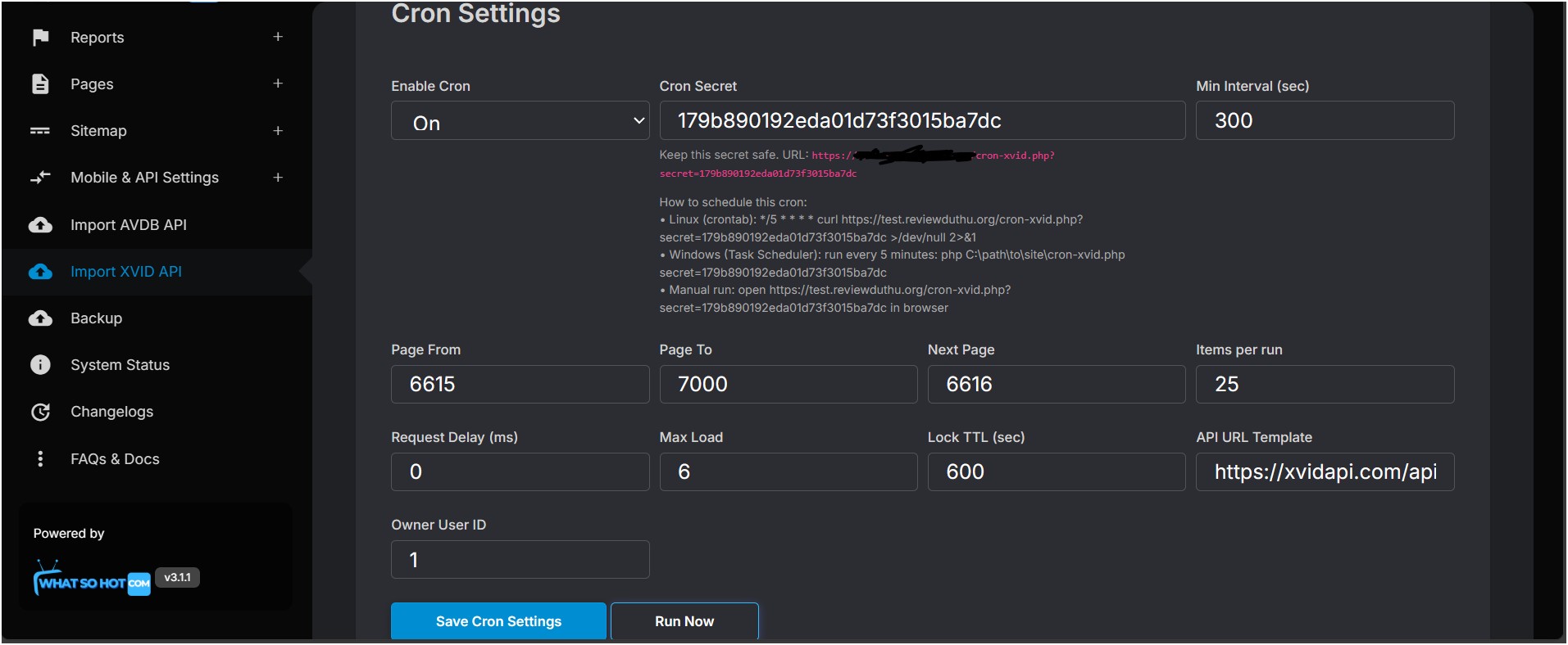 Click tab Crawl AVDB or Crawl XVIDAPI -> Scroll Down -> Cronjob table