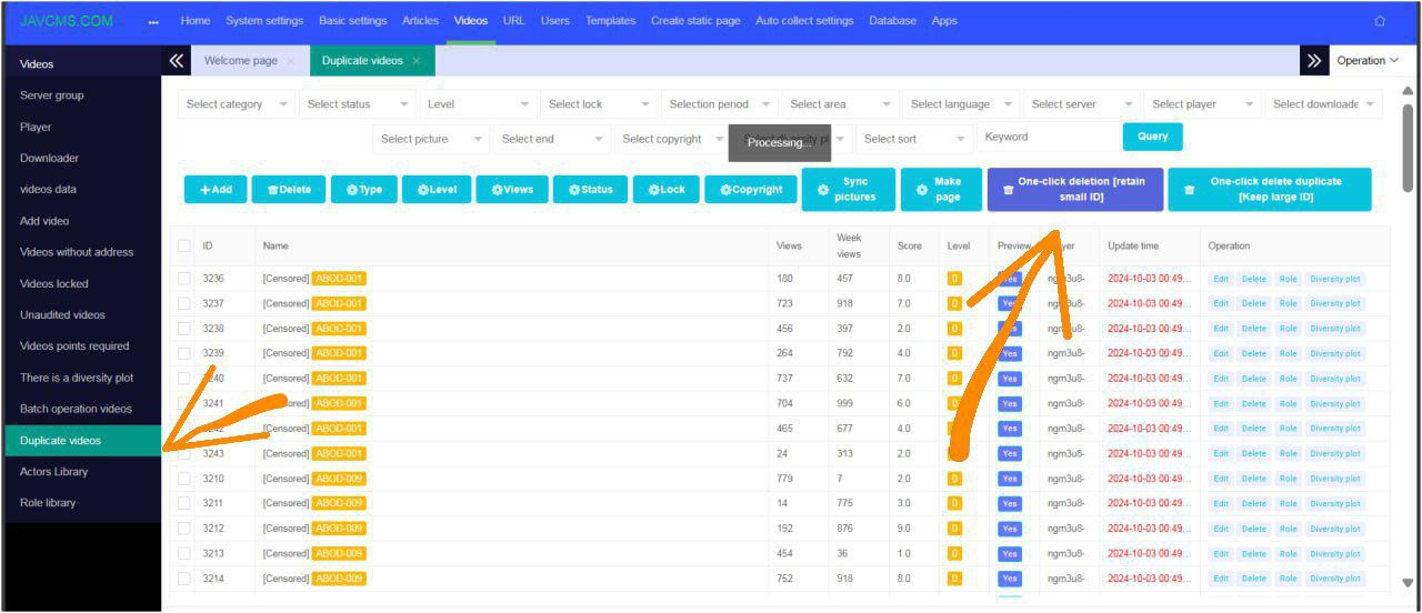Remove duplicate videos from JAVCMS