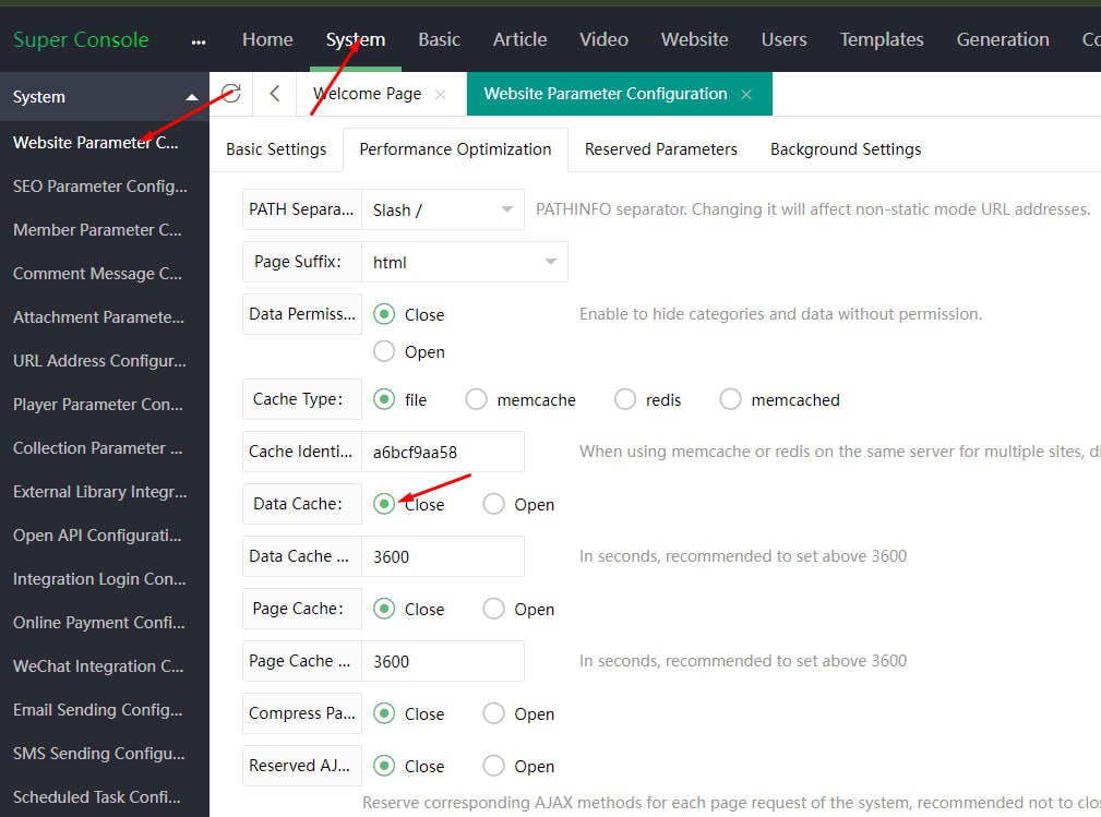 Select “Cache Type” and choose alternative storage (Redis, Memcached)